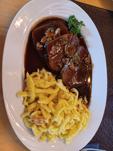 Read moreNun, wir waren zum ersten Mal in diesem Lokal und bekamen ohne vorherige Reservierung eine Platz auf der Terrasse. Bestellt habe ich einmal „Pfälzer Teller“ und meine Frau Leberknödel mit Sauerkraut und Bratkartoffeln. Die Portionsgrößen sind o.k. Die Sauce war extrem salzig , wahrscheinlich etwas zu stark einreduziert. Das Sauerkraut schmeckte extrem nach Maggi, kann aber auch ein Brühepulver o.ä.gewesen. Die Bratkartoffeln waren o.k, jedoch der Preis von 4,50 € ❗️völlig überteuert. Komisch auch , dass das Brot , welches ja beim normalen Preis dabei ist , nicht gereicht oder wenigstens gegengerechnet wird. Man merkt auch , dass das gesamte Ambiente schon etwas in die Jahre gekommen ist. Getränkepreise etwas zu hochpreisig. Positiv, dass man einen Kräuterlikör aufs Haus bekommt. Kurzum… richtig überzeugt hat uns die Gesamtperformance nicht. Jede Bewertung ist natürlich subjektiv , doch ein nochmaliger Besuch würde ich eher nicht in Betracht ziehen, dafür gibt es viele bessere...