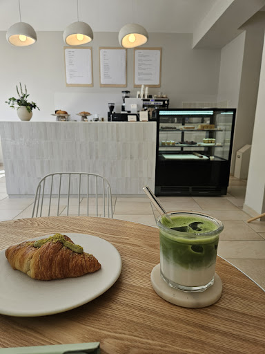 Read moreIch bin hier hergekommen, weil ich dringend auf der Suche nach einem guten Matcha war und dieser Ort mir vorgeschlagen wurde. Gutes vorab: Die Bedienung ist freundlich und das Café ist wirklich goldig. Weit genug von dem Stadtkern weg, um in einer ruhigen Lage zu sein und dennoch weit genug, dass man leicht dorthin gelangen kann. Man fühlt sich wie in seinem eigenen, ästhetischen Film, wenn man hier ist. Das Pistazien-Croissant war GÖTTLICH, ich glaube ich habe selbst in Italien kein so gutes Croissant gegessen. Und der Iced Matcha hat mich auch positiv überrascht. Es war nicht dieses süßliche Fertigzeugs, was man sonst bei Starbucks und Co bekommt, sondern wurde wirklich vor Ort mit viel Liebe zubereitet. Dadurch muss man vielleicht ein kleines bisschen länger warten, aber das ist es wert. Es gibt viele Variationen, was Milch angeht bei den Getränken: Hafermilch, laktosefreie Milch, Mandelmilch…hat mich richtig happy gemacht :D Für meine lieben Mitstudis: Es gibt vereinzelt Steckdosen und sehr gutes Wlan. Ihr seid hier also in einem Studententräumchen angekommen.