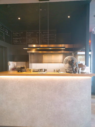 Die Positionierung des Essens als mix zwischen Restaurant und Street Food spiegelt sich auch im innen- und Aussenbereich wieder: die Tische und Stühle laden nicht zum langen verweilen ein - manche würden das negativ bewerten, ich sehe das neutral. Wartezeiten sind zu Stoßzeiten im Bereich 25-30 Minuten. Wenn man unmittelbar um 12 oder außerhalb der Lunch / Dinner-Zeiten bestellt geht’s auch mal deutlich schneller.