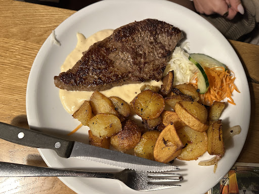 Es gab allerdings eine Bedienung (ältere Dame), die nicht all zu freundlich war. Im Internet steht, dass das Restaurant bis 23 Uhr geöffnet hätte, was sich allerdings durch den Hinweis der angesprochenen Bedienung als falsch herausstellte. Dadurch, dass wir um 21:15 dort waren, wurden wir etwas unfreundlich darauf hingewiesen, dass das Lokal um 22 Uhr schließt. Man muss bedenken, dass es Sonntags war, weswegen wir noch Verständnis dafür aufbringen konnten. Am folgenden Tag allerdings waren wir bewusst früher dort umd hatten vor draußen vor dem Lokal zu essen. Da alle Plätze belegt waren, entschieden wir uns drinnen erst eine Weinschorle zu trinken und etwas zu warten, bis zwei Plätze frei werden. Dieselbe Bedienung wie am Tag zuvor bediente uns und fragte, was wir essen möchten. Daraufhin erwähnten wir, dass wir gerne draußen sitzen würden und noch etwas warten bis Plätze frei werden. Die Antwort der Bedienung war, dass wir da lange warten könnten, da alle draußen erst noch essen. Sie sagte dies wieder etwas unfreundlich. Wir ließen uns nicht beirren und schauten nach ca. 5 Minuten nochmal draußen nach und, siehe da, es waren zwei Plätze frei. Ich hätte entweder Verständnis erwartet oder einen netten Hinweis darauf, uns evtl. Bescheid zu geben, wenn Plätze frei werden, zumal es nicht all zu voll war.