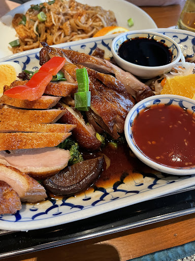Read moreWir waren vor einem Kinobesuch das erste mal im BanThai in Mainz. Das Restaurant liegt fußläufig zum Bahnhof Römisches Theater und nicht weit entfernt vom Rhein. Wir hatten einen Tisch reserviert und dann freie Platzwahl als wir angekommen waren. Von Außen könnte man sicherlich noch etwas machen um den Charme zu erhöhen, innen ist jedoch alles sehr stimmig. Holz und leicht abgedunkeltes Licht machen das Ambiente aus. Die Getränkeauswahl ist überschaubar aber auch ausreichend. Es scheint viele Cocktails zu geben, da haben wir jedoch keinen probiert. Nach gut 20 Minuten wurde unsere Essensbestellung von der freundlichen Bedienung aufgenommen. Auf unsere Nachfrage, das Hähnchen für unser Curry und WokGericht paniert zu bekommen, versuchte die Dame uns davon zu überzeugen, dass es nicht so gut zum Wok Gericht passen würde. Diesen Hinweis hätten wir annehmen sollen, finde es auch sehr gut, dass man versucht, den Kunden das bestmögliche Geschmackserlebnis zu servieren. Zunächst bekamen wir unsere Vorspeisen - Teigtaschen mit Shrimps und Hähnchen, dazu eine Süß-Saure Soße mit Erdnussstückchen. Die Hauptspeisen kamen kurz nachdem die Vorspeisen wieder abgeräumt wurden. Von der Menge her alles super, geschmacklich top. Das Wok Gericht war mit 3 Chillis als Sehr Scharf gekennzeichnet. Es war scharf, jedoch habe ich auch schon schärfere Thai Gerichte gegessen. Geschmacklich waren die Hauptspeisen jedoch beide sehr gut - würden wir so auch wieder bestellen. Der Service war sehr freundlich und bemüht. Alles in allem hat sich der Besuch um BanThai...