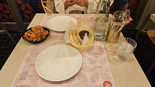 The pan-fried cauliflower was great, the papadoms were just ok. The stir-fried mushrooms were very nice, but the pan-fried batat was too seasoned. Generally everything had too much cumin which just killed the taste. The naan bread with garlic was quite good, but the vegan main dish we had - grilled tofu with rice and salad - extremely poorly seasoned but with tons of cumin. We actually left almost half of it. It was also quite expensive in my opinion. The staff is very friendly and polite, and the ambiance is nice.