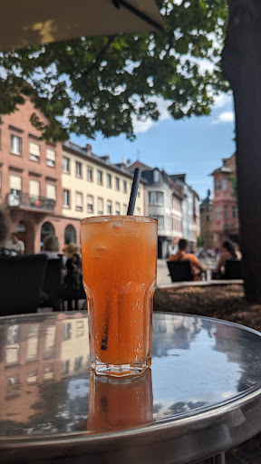 Wir waren zu dritt, bekamen aber nur zwei Stühle am Tisch – ein dritter wurde uns nicht angeboten. Die Weinschorle, die wir dann bestellt hatten, schmeckte nicht besonders gut und war zudem recht teuer. Dass ausschließlich Barzahlung möglich war, passt leider zum insgesamt unzeitgemäßen Eindruck.