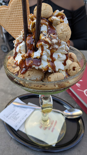 Read moreSchon seit vielen Jahren gehe ich hier sehr gerne Eis essen. Es gibt hier eine sehr große Auswahl an verschiedenen Sorten von Fruchteis und Milcheis, von denen ich noch nicht alle Sorten ausprobiert habe. Aber ich habe halt meine Lieblings-Sorten herausgefunden, die ich immer wieder gerne esse, weil sie mir so gut schmecken. Außerdem gibt es hier eine große Auswahl an Eisbechern, Spaghetti-Eis in verschiedenen Variationen und sogar Eis-Kreationen speziell für Kinder. Im Sommer sitze ich gerne draußen vor dem Eiscafé (falls dort einmal genügend Platz vorhanden ist, denn dieses Eiscafé ist wirklich sehr beliebt) und für die kalte Jahreszeit gibt es auch genügend Sitzplätze im Erdgeschoss und im ersten Obergeschoss. Der Bereich des Eiscafés im Erdgeschoss könnte auch für Rollstuhlfahrer benutzbar sein, denn es gibt zum unteren Gastraum hinein keine störende Treppenstufe und die Eingangstür lässt sich weit genug öffnen. Allerdings stehen dort im Gastraum im Erdgeschoss sehr viele Tische und Sessel, so dass eventuell deshalb dort dann doch kein Platz mehr vorhanden ist, um mit einem größeren Rollstuhl hinein zu fahren. Weil ich am Schillerplatz sehr oft von einem Linienbus in eine Straßenbahn umsteige, mache ich auch gerne am Schillerplatz eine Pause - besonders jetzt im Sommer. Und dann hole ich mir im Eiscafé De Covre einige Kugeln Eis zum Mitnehmen und setze mich auf eine der vielen Bänke zwischen dem Schiller-Denkmal und dem Fastnachtsbrunnen ganz gemütlich hin, genieße das gute Eis und ruhe...