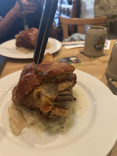 Accompanying our drinks, we indulged in the Schweine Hacksen, a traditional dish that truly satisfied our cravings. The pork knuckle was beautifully cooked, featuring a crispy skin and tender meat that practically melted off the bone. The seasoning was spot on, enhancing the natural flavors without overpowering them.