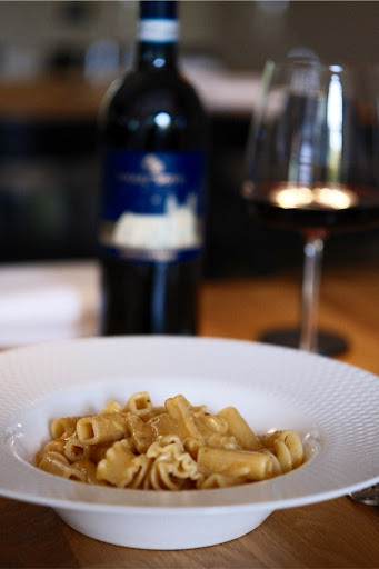 Das Wagyu-Tataki von feinstem Wagyu-Rind würde man so sicher nicht beim Italiener vermuten, darum kann ich sagen: Es hat mich echt geschmacklich umgehauen. Hier erkennt man, dass in der Küche ein Freak am Herd steht. Modernità in Italo | Japanische Kombination in Perfektion PUR! Gelebte italienische Tradition kommt mit der Pasta, Patate und Provolakäse an den Tisch. Pasta ist nicht gleich Pasta und das Gusto verwendet ausschließlich für alle Gerichte Pasta Mancini. Diese Pasta aus den Marken ist den Insidern sicher bekannt, für alle Neugierigen. Die Edel Pastamanufaktur ist mitten in riesigen Kornfeldern integriert, da es ein landwirtschaftlicher Betrieb war.