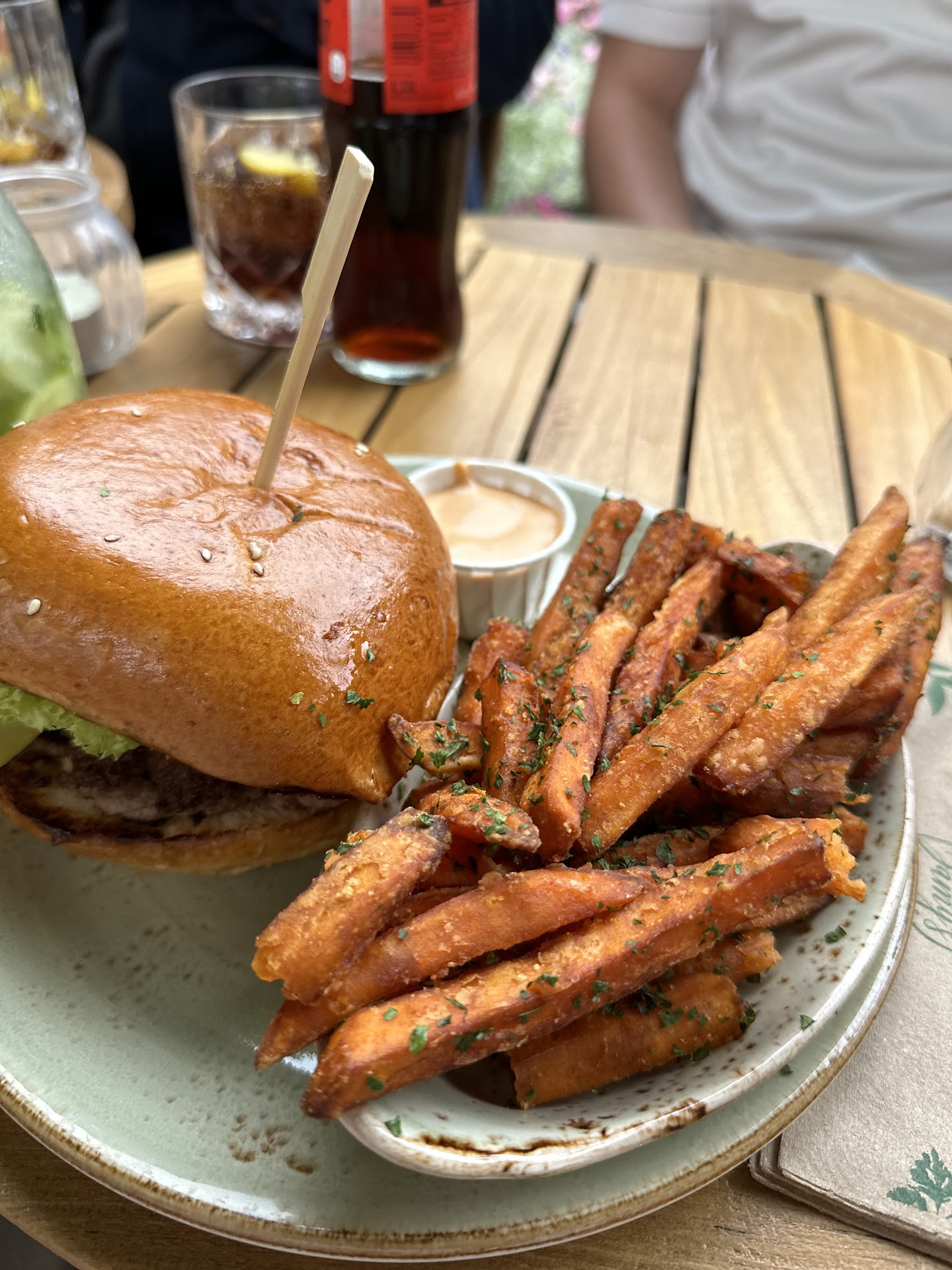 Insgesamt sind die Burger ganz ordentlich (den Portobello-Burger meines Mannes fand ich z. B. viel besser), aber nicht die "Offenbarung", die ich durch die guten Bewertungen erhofft hatte. Dafür sind die Preise einfach auch zu hoch (mein Burger + eine Beilage + 4 Saucen schlug mit 18,50 € zu Buche). Und ja, ich weiß, alles wird teurer ... Aber irgendwann hinkt das Preis-Leistungsverhältnis hinterher. Ein Pluspunkt: Vegetarisch und vegan lebende Menschen finden hier auch etwas zu essen. Auch wenn die Konkurrenz schon längst mehr als nur einen veganen Burger auf der Karte hat ... Tipp ans Restaurant: Bietet eine vegane Mayo an.