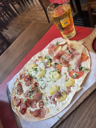 Read moreMake sure you book if you want to get in, especially at weekends. In April on a Saturday night, we couldn't get a table. It may be better in good weather as they seem to have tables outside. Along with the flammkuchen (similar to thin pizzas) they do a very good wild boar burger with salad and a range of baked potatoes (the one with salmon comes with a heap of fish). There are sweet flammkuchen and it is worth the extra 50c to have them flambéed in front of you. Drinks (wine and beer) are reasonable. Mostly frequented by a younger crowd which makes for a great ambiance....
