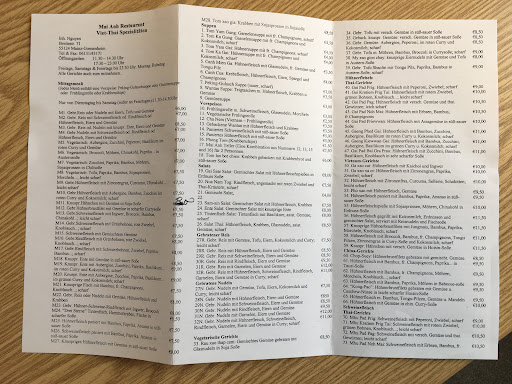 Wir bestellen regelmĂ€Ăig Essen zum Abholen bei Mai Anh und haben uns bereits durch groĂe Teile der Speisekarte probiert. Das Essen ist durchweg lecker, die Gerichte frisch zubereitet und das Ambiente im Restaurant selbst ist angenehm.