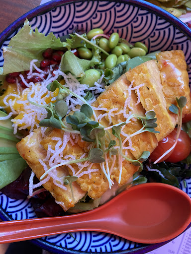 Das GemĂŒse war vielleicht 2 Min im Dampfgarer, auch sehr knackig bis roh. Von GewĂŒrzen, geschweige denn von Salz durfte mein GemĂŒse nur trĂ€umen. Der Tofu war auch nicht eingelegt, aber mit etwas extra SoĂe vom Tisch, ganz ok.