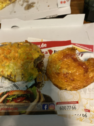 Read moreM. E. der optimale Lieferdienst. Das Label Pizzaboy ist zu bescheiden! Die Asia-Gerichte und die Burger sind eher noch besser als Pizza (die ja eher immer aufdampft und für mich kein Lieferessen ist. Man kann allerdings auch vor Ort essen. Ich bestelle seit Jahren und wurde in der Tat nur einmal enttäuscht, und da habe ich irrtümlich bei der Filiale in der Berliner Straße bestellt... Also da können die Jungs in der Mombacher Suderstraße ja rein garnix dafür. Besonders zu empfehlen: Knuspriges und sehr reichhaltiges Entengericht Nr. 451 'Gaeng Phed'. Aber die günstigen Knusperhuhn-Gerichte sind auch sehr gut. Am besten online bestellen, keine Missverständnisse und für die Pizzaboys ist es ja auch bequemer. Lieferzeiten erstaunlich kurz! Und Terminbestellungen werden exakt ausgeführt,...