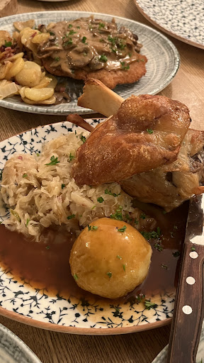 Read moreThey finally have some vegetarian choices besides a salad. First is potato dumplings with mushroom sauce and crunchy salad Second is creamy cheese spaetzle with beer braised onions, chives and a mixed salad. The third choice is a plate with 2 cauliflower and cheese croquettes with fries and a mixed salad. I recommend a side order of mushroom cream sauce to smother them with. Good choices for wines and beer. Cash only. Wifi didn’t work when I was there. Tables on the patio close together. I ate inside for social distancing during the pandemic. Staff friendly. ...