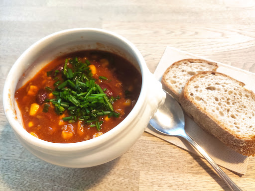 Read moreSmall but absolutely fine variety of soups ranging from vegan to chili con carne; they also offer a few cakes (we didn't have any). You order & pay at the counter (cards accepted) & staff brings it to the table. Employees friendly & tolerant of...