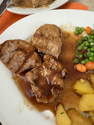 Als die Kellnerin die Teller abräumen wollte, fragte sie mich, warum ich überhaupt ein Fleischgericht bestellt habe, wenn ich das Fleisch nicht gegessen habe. Auf meine Antwort, dass es viel zu zäh und ungenießbar war, reagierte sie mit einem sehr überraschten Gesichtsausdruck und hat sogar leicht die Augen verdreht.