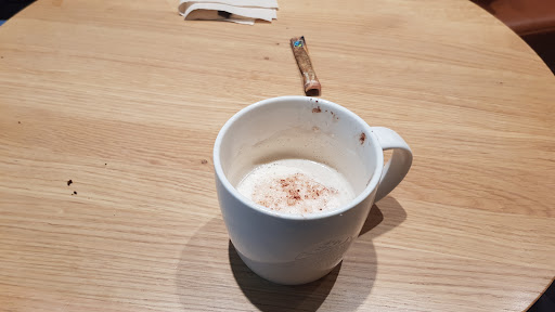 Read more2023-08-10 Endlich ist die Starbucks Filiale in Mainz wieder geöffnet, so freute ich mich heute auch auf ein "Karamell Machiatto" (Tall für knapp 7,00 € "teuer", Geschmack bitter, der jedoch durch die Karamell Haube etwas ausgeglichen wurde). Doch leider wurde ich schnell enttäuscht, angefangen von der Getränke Auswahl die kleiner war, Bonus Programm nicht möglich zu benutzen (da es ein Franchise Filiale ist), keine Kundentoilette, Preis deutlich angehoben. Personal war bemüht, freundliche Wortwahl, aber eher den Eindruck hinterlassen (danke wann muss ich nicht mehr die Bestellung aufnehmen), bei Vorzeigen der Bonuscard (verwirrte Reaktion, dann die Aussage das diese Filiale eine Franchise wäre und dies nicht akzeptiert). Die Getränke Ausgabe stellt einfach das Getränk hin ohne Anmerkung welches es sei, so bin es nicht gewohnt und musste erst nachfragen was es wäre, da ich nicht alleine dort Bestellt habe, sondern eine zweite Kasse mit Kunden beschäftigt war. Die Optik des Umbaus finde ich hell, die Sitzvarianten OK, Kundenfreundlich und auch Service orientiert bzgl Mobile Geräte auch kostenlos zu laden. Ob es ein kostenloser W-Lan Zugang gibt (wie vor dem Umbau, hatte ich leider vergessen zu fragen). Mein Fazit, Starbucks Mainz wird mich als Kunde nicht behalten und am Bonus Programm weiter teilzunehmen müsste ich jedesmal nach Wiesbaden oder andere Städte aufsuchen. Was nicht relevant für mich wäre, sowie enttäuscht das noch Guthaben auf meiner Card ist 😥. Somit die Bewertung: Service + Essen 2 Sterne Ambiente 3 Sterne