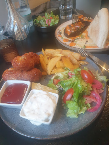 Ich hatte die "Vish and Chips" mit Jackfruit in Panade. Absolut leckere Kreation, habe ich noch nirgendwo gegessen und bin begeistert! Dazu tolle Fritten und Dip sowie köstlicher Salat! Auch die Nicht-Veganer mit denen ich da war waren überzeugt ;-D Die Aubergine mit Hummus und Fladenbrot habe ich mitprobiert, im Vergleich zu meinem etwas deftigerem Essen angenehm leicht, ist also für verschiedenste Gelüste gesorgt! Und dazu auch noch alles vom selbst vegan lebenden Besitzer persönlich frisch gekocht, was man auch schmeckt, echt mit Liebe und Leidenschaft kreiert und zubereitet!