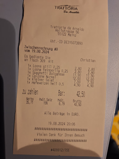 Read moreNOCH NIE SO SCHLECHT ITALIENISCH GEGESSEN!!! Zuerst muss ich anmerken, dass ich Italien und die italienische Küche liebe, mindestens einmal pro Woche italienisch essen gehe und mindestens 4 Wochen im Jahr in Italien verbringe. Da das Restaurant direkt neben unserem Hotel in Mainz war und vom Ambiente her einen guten Eindruck machte, ging ich vorgestern mit meiner Frau dort essen. Die Bedienung war mehr als schlecht!! Wir haben 10 Minuten warten müssen bis wir eine Speisekarte bekommen haben und weitere 15 Minuten vergingen, bis wir bestellen konnten. Es lief immer wieder mal ein Kellner vorbei, aber keiner fühlte sich zuständig. Wir haben mehrfach gehört "Gleich kommt jemand". Ich habe als Vorspeise ein Rindercarpaccio bestellt mit viel Parmesan und einer halben Zitrone. Dazu muss ich anmerken, dass ich in meinem Leben schon mehrere Hundert Carpaccio gegessen habe. Aber so ein schlechtes sowohl vom Geschmack als auch von den Zutaten wie Öl und Balsamico habe ich noch nie serviert bekommen. Die Zitrone wurde mir erst nach reklamieren gebracht und direkt auf den Tisch gelegt. Ich fragte den Kellner, ob er vielleicht einen kleinen Teller dazu bringen könnte. Das war dann möglich. Auf einem Carpaccio habe ich bisher immer geraspelten Parmigiano bekommen; auf dem hier servierten lagen ca. 4x8 cm große Scheiben und diese schmeckten überhaupt nicht nach Parmigiano. Ich war schon versucht das Gericht zurückgehen zu lassen, hatte aber Hunger und habe es gegessen. Brot dazu habe ich übrigens erst nach Nachfrage erhalten. Meine Frau hatte eine Tomatensuppe. Die war ok, aber eine Serviette gab es nicht zu dem gebrachten Löffel. Als Hauptspeise habe ich Tortelloni mit Garnelen in Currycremesauce bestellt. Die Tortelloni haben schlecht geschmeckt und die Sauce war ein Gemisch aus Wasser, Fett und etwas Currypulver. Ich habe dies reklamiert und als Antwort erhalten, dem Koch wäre die Sahne ausgegangen. So etwas Blödes als Ausrede habe ich noch nicht gehört! Am Anfang einer Woche sollte ein Restaurant wohl für alle Gerichte, die auf der Speisekarte stehen, die Zutaten vorrätig haben. Ansonsten hätte man sagen müssen, eine Currycremesauce können wir leider nicht machen! Meine Frau hatte Tagliatelle mit Lachs in Tomatencremesauce, aber natürlich auch hier keine cremige Sauce wegen der fehlenden Sahne. Der Lachs war wohl ein preiswertes Tiefkühlprodukt mit wenig Geschmack. Für die Unannehmlichkeiten wurde uns eine kostenlose Nachspeise angeboten. Diese haben wir angenommen, aber viel lieber hätten wir gerne dort gut gegessen. Insgesamt waren Speisen und Service katastrophal!!