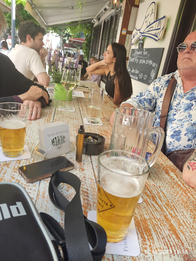 Great outdoor area in a pedestrian zone, with a more unique approach to ordering food. The 🦆 (Ente), as most locals call it by its short form, is a great place, especially in the warmer months of the year. (This review will mostly be about the outdoor area.) The Zeitungsente itself only offers drinks, but they have menu, from which you can order from the sourrounding restaurants. You can even order from any other restaurants or bring fiod yourself and eat it there. The waiter will oder for you, if you order something from "their" menu. Only real drawback in my eyes and the reason why the 🦆 is not for me in the colder months; the indoor space is a smoking area. I am myself a smoker but after a while and especially if more and more people visit it, the air can get very stuffy. But as I mentioned earlier, I really like the outdoor area with the long benches, good drinks and a cool approach to providing food for you customers. In my opinion, if it's a bit warmer, or cold weather don't bother you, it's a really great place to visit and enjoy...