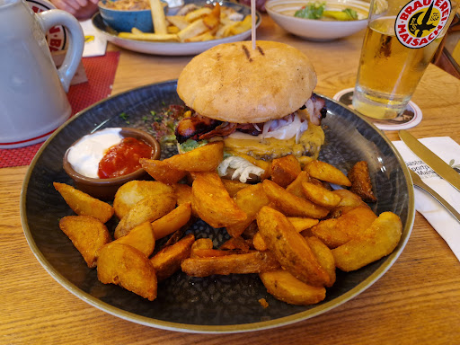 Read moreErst war alles okay, das Ambiente zwar ungemütlich, aber das Essen lecker. Die Portionen sind in meinen Augen viel zu groß - an vielen Nachbartischen gingen halb volle Teller, an denen gestandene Männer scheiterten, zurück. Solche Lebensmittelverschwendung muss nicht sein. Vegetarische Gerichte nur auf Nachfrage (oder Salat/Suppe). Bei der Zahlung war ich erstmal sehr überrascht darüber, dass Kartenzahlung nicht möglich ist - immerhin haben wir das Jahr 2024. Des Weiteren musste ich für ein Leitungswasser und eine Vorspeisenplatte über 23€ zahlen - weil das LEITUNGSwasser 4,20€ kostete und das Pita (nicht bestellt und mit Vorspeisenplatte serviert) extra berechnet wurde - zusätzlich zu der 15€ teuren Vorspeisenplatte. Das finde ich einfach nur frech und täuschend. Uns sieht diese Gaststätte nicht wieder.