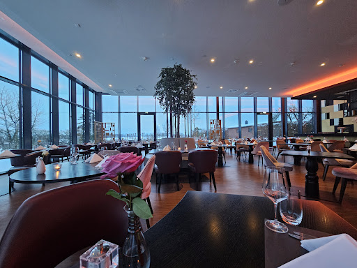 Das Schloss für sich ist schon wirklich toll anzusehen - mit einem Schlosspark und angrenzendem Golfplatz. Auf den Schlosspark hat man von der Orangerie einen wunderbaren Ausblick - auch aus dem Wintergarten der Orangerie. Das Ambiente ist gemütlich, großzügig, mit hallenartig hohen Decken. Es gibt zu den Essenszeiten immer eine leise Musik, die komplett entschleunigt - mal Klavier, mal leicht elektronisch mit Synthesizer, echt entspannend. Das Essen ist nicht "à la carte"sondern vom Buffet gewesen. Und das Buffet ist der Wahnsinn - inklusive live cooking. Es ist für fast jeden Gaumen etwas da. Selbst für Veganer ist gesorgt - zwar nur eine kleine Kochstation, aber auch die verwöhnt. Das Fleisch und seine Zubereitung entspricht wirklich hohen Ansprüchen - egal ob Fisch, Huhn, Rind, Schwein, Truthahn oder anderes. Dazu werden Beilagen ausgelegt, die normal anmuten, aber großartig im Munde zergehen: Gnocchi, Ofenkartoffeln, gebratenes Gemüse wie Zucchini und Aubergine oder Paprika sind dezent gewürzt und schonend gegart. Alles zusammen gab es bei mir mit fast jeden Bissen ein Grinsen im Gesicht. Es war purer Genuss. Die Hauptgänge wurden noch eingerahmt von in der Regel drei verschiedenen Vorspeisen vorweg, sowie Kuchenstückchen, Mouse, Cremes, diversen Früchten und Eis zum Nachtisch. Und zum Magen schließen gab es eine reichhaltige Käseplatte und dazu kleine (vermutlich selbst gebackene) Brötchen in dunkel und hell - richtig kross und voller Aroma. Genial. Grundsätzlich muss ich sagen, dass die ausgewählten Zutaten so toll miteinander komponiert und präsentiert werden, dass es wirklich eine Freude ist, hier zu essen. Was ein solches Essen noch mehr zu einem Erlebnis macht, ist der Service. Die Damen und Herren sind IMMER da, wenn man sie braucht und auf der anderen Seite kaum zu bemerken, wenn man sie nicht braucht. Das Personal ist immer zuvorkommend, höflich, fröhlich und nie hektisch. Das macht mir als Gast unglaublich Spaß, diesen Service genießen zu dürfen - ein dickes Lob dafür. Wenn ihr in dieser Ecke seid, und euch trotz des gehobenen Preisniveaus etwas gönnen wollt, kommt hierher - es lohnt...