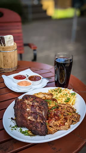 Read moreAufgrund der guten Bewertungen mit gewisser Vorfreude zur "Räucherei" gefahren. Auch ohne Reservierung haben wir spontan für zwei Personen einen Tisch bekommen, im Nachgang wären wir lieber abgewiesen worden. Der Service Bestand aus zwei Leuten und belegt waren 6 von 12 Tischen im Außenbereich, ein zusätzlicher im Innenbereich... Was soll ich sagen, so hektisch habe ich noch keinen Service erlebt. Versucht einfach hin und wieder durchzuatmen, kein Gast ist euch böse wenn es eine Minute länger dauert! Bestellung wurde schnell aufgenommen, und fast noch schneller kam das Essen zu uns. Und hier wäre es angebracht, wenn die Küche sich sogar ganze 15 Minuten mehr Zeit nehmen würde und ihre Geichte hin und wieder mal probiert. Das pulled pork kannst du nicht vom smoker holen, ist klar dafür dauert es zu lange und du musst im Restaurant vorbereitet sein - aber etwas Fleisch in eine Auflaufschale zu legen, eine angebliche Malzbiersoße drüber kippen und im Anschluss eine Packung geriebenen Käse (definitiv nicht reiner Cheddar, höchstens Cheddar-Mix) drüber hauen und es in der Mikrowelle zu erhitzen... Das ist beleidigend für jeden tatsächlichen Smoker und passt nicht zum Preis-Leistungsverhältnis! Der beschriebenen überbackene Fleischhaufen wurde in einer Pommesschale aus Porzellan (wie auf den Bildern anderer Gäste) serviert und mit zwei verschiedenen Salaten gereicht. Auch das kannte ich noch nicht, dass zwei Salate als Beilage serviert werden, sei's drum. Der Blattsalat war OK, das Dressing war gut und nicht alle Stücke im Salat waren riesig und Zusammenhängend. Den beschriebenen Coleslaw hat man optisch gerade so erkennen können, geschmacklich keinen Charakter und mehr wässrig / abgestanden als tatsächlicher Coleslaw. Seinen Preis von fast 20€ pro Teller absolut nicht Wert und eine Abzocke bei solch schlechtem Niveau!