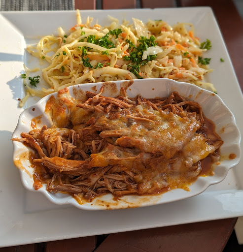 Als endlich das essen kam waren wir wirklich sehr enttäuscht. Das Pulled Pork war gerade mal Lau warm und hat weder geräuchert noch noch nach BBQ geschmeckt. Ehr nach Zimt Plätzen ich dachte erst das es interessant schmeckt aber nach der Hälfte war es einfach nur noch ekelig und nicht mehr essbar.