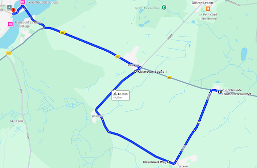 Ein Tip für andere Fahrradbegeisterte, da bis Roez noch kein Fahrradweg gibt, kann man entweder direkt hinter dem Hotel über einen Feldweg, durch den Wald bzw. man fährt Richtung Malchow nach ca, 250m links, nach Lexow – Kisserow, dann wieder an die B192 nach Penkow und ab dort gibt es wieder einen Radweg bis Malchow – Das ist nämlich der sichere Weg, anstatt die 4 km auf der Bundesstraße zu fahren! Wenn man Richtung Waren möchte, können wir auch nur den Feldweg hinter dem Hotel empfehlen! (dazu habe ich 2 Beispiele als Foto)