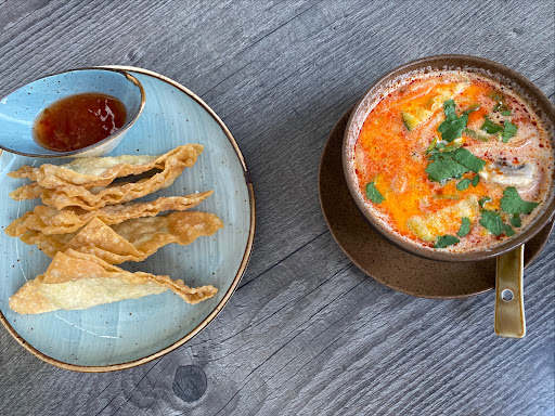 Read moreIch bin etwas zwiegespalten. Meine Vorspeise waren zwei in Reispapier gewickelte Gemüse-Reis-Garnelen-Rollen, diese waren lauwarm, mit einer wirklich fantastischen Soße zum dippen. Wegen dem "lauwarm" war ich verwirrt, aber vermutlich muss das so. Als Hauptgericht hatte ich Glasnudeln mit Gemüse und gebratenem Huhn. Die Glasnudeln waren kaum zu bändigen, da sie in der Soße schwammen. Das Huhn war kross, das Gemüse hätte mMn noch eine halbe Minute gebraucht (wobei der Pak Choi auf dem Punkt, der Brokkolistrunk aber noch sehr knackig war). Soviel zur Konsistenz. Die Soße hat mich nach dem fulminanten Dip davor enttäuscht. Der Geschmack von "Spüli" drängte sich auf, was bestimmt auch am Koriander lag - den ich eigentlich sehr gerne mag und gut aus der lateinamerikanischen Küche kenne. Da der Service super freundlich, aufmerksam und schnell war, gibt's gut gemeinte 4 Sterne. Das nächste Mal esse ich was mit Reis (das flutscht mir wenigstens nicht von der Gabel). Meine Begleitung war mit dem Essen (vegetarisch) zufrieden. Die Limo kann...