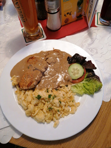 Read moreHeading to Passau, but too hungry to do the last hour without eating. Google maps showed this place along (pretty much) the way we were heading. Plenty of car parking, though not surprising for a Monday (late) lunchtime. There's a cool playground with zip wires over a small stream (best playground in the whole wide world, according to my daughter). Plenty of outdoor seating. Inside there's table football and a pool table, and a soft play area. Food was great. Traditional German cuisine. Very happy to have found this place. I heartily...