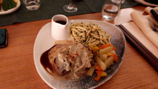 Read moreWir waren zum ersten Mal im Badischen Hof und sind begeistert. Auf die vorangegangenen Kritiken möchte ich nicht eingehen, denn über Geschmack lässt sich bekanntlich nicht streiten. Allerdings koche ich selbst sehr gerne und habe daher die Messlatte etwas höher gestellt. Schon die Ouvertüre zeigte sich verheißungsvoll. Mein Mann genoss die delikate Suppe aus Urkartoffeln, ich indessen meinen Feldsalat in Apfelsherrydressing mit Croutons, Schinkenwürfeln, Walnuss- und Apfelstückchen. Als Hauptspeise hat der beste Ehemann von allen einen zarten Rinderbraten in Spätburgundersoße, Kartoffelklöße und Gemüse bestellt, ich wählte eine halbe gegrillte Ente in Dunkelbiersoße mit Kartoffelklößen und Gemüse. Was gutbürgerlich klingend daherkommen mag, schmeckte äußerst delikat auf sehr gehobenem Niveau. Panna cotta bildete den süßen Abschluss. Die Weinkarte zeigt sich Corona bedingt etwas spärlich besetzt, ein einziger Rotwein zierte die Aufstellung. Allerdings war auch der gelistete spanische Cuvee eine Klasse für sich und mundete hervorragend. Die Portionen empfanden wir üppig, den Service als sehr aufmerksam...