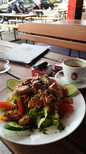 Von Außen wirkt das Bistro Café schön amerikanisch und modern. Im Sommer gibt es Sitzplätze im Freien, im Winter dementsprechend nicht, allerdings gibt es einen abgegrenzten und beheizten Raucherbereich, der mit einer Tür zum Rest verbunden ist.