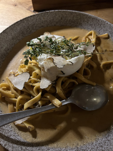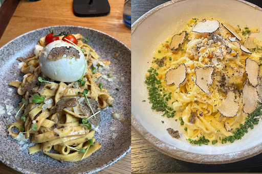 Die Qualität der Speisen ist durchweg als sehr gut zu bezeichnen. Eine kleine Selektion an Vorspeisen von Bruschetta über Crunchy-Calamaris bis hin zu Süßkartoffelsüppchen lässt auf tolle Hauptgänge hoffen. Wir hatten bei unserem Besuch ein Bavette-Steak auf Tagliatelle mit Trüffel-Sahnesauce und Pfifferlingen (23,-€) sowie eine Dorade auf Grillgemüse und Rosmarinkartoffeln (20,-€). Beides extrem schmackhaft und voller interessant aufeinander abgestimmter Geschmacksnuancen. Man merkt: Auch in der Küche funktioniert alles so wie es soll.