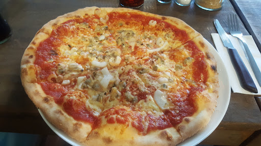 Read moreWird hatten drei Pizzen, einen Salat und eine Tiramisu. Alles in allem lecker, aber auch nix was einen vom Hocker haut. Die Pizzen hatten einen weichen Boden und etwas spärlich belegt/viel Rand. Der Salat war ok, schön wäre gewesen, wenn er nach dem Zerhacken noch etwas vereinzelt worden wäre, waren große Eisbergstücke drinnen. Die Tiramisu war nicht toll. Zu viel warme Sahne, dafür zu wenig oder gar keine Mascarpone, das Ganze serviert in einer Styroporschale 😦. Auch sonst ist der Service verbesserungswürdig, um das Besteck gibt es statt einer Servierte ein Stück Küchenrolle und zu den Getränken werden einem kleine Glasbecher gereicht. Will man etwas nachbestellen muss man reingehen und dies ordern, immerhin wird es dann gebracht. Dafür sind die Getränkepreise sehr günstig, wenn man sich geschickt anstellt: 0,33l Cola/Limo/... Kosten 2€, nimmt man die 1l Flasche kostet diese 3€! Man kann draußen vor dem Lokal sitzen, was bei schönem Wetter...