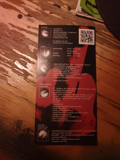 Read moreToll, eine Rückblende in die Vergangenheit. Wer es urig mag ind mit Individualisten zurecht kommt, der fühlt sich hier definitiv wohl. Das Contra N war immer ein gemütliches Urgestein und bleibt es hoffentlich auch. Das Publikum ist heute genauso offen und verrückt wie damals und die Preise immernoch super. Man muss aber den Flair einer Fledermaushöhle vollgepackt mit Kitsch aus alten Zeiten mögen. Veränderungen wünsche ich mir keine. Einen Stern Abzug lediglich dafür, dass es Objektiv gesehen eben eine Kneipe für ein spezielles Publikum ist. Aber ich wünsche es mir nicht anderst. Lediglich die Toiletten könnten mehr vertragen, aber das hätte mich damals auch...