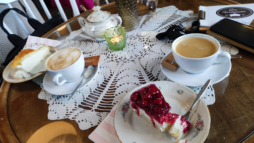 Read moreGanz nette Ambiente mit verschiedene Stillen, wie bei Oma (verschiedene Stühle und Tische),die Bedingungen die da tätig sind, arbeiten ehrenamtlich. Alle sehr freundlich, leckere Kuchen, Torten und Sektchen gibt es auch. Rundum ein Genuß. Was nicht nur für Eltere Leute. Es gibt Ecke für Kinder und sogar...