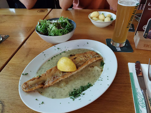Read more2025 update: Unfortunately was again too hot for meat but managed to get a brewery fish course: the pike filet in dill and Weizen (and I think cream too, right?) sauce. I asked for some extra bread instead of the Salzkartoffeln but they were served anyway. I did take some bread but not sure from whose dish. I went for a simple dessert of an ice cream scoop and, although from supermarket (Movenpick I assume) I think they should broaden their selection beyond chocolate and vanilla. For example the other classic multipurpose lemon, that I would have enjoyed better than the vanilla.
