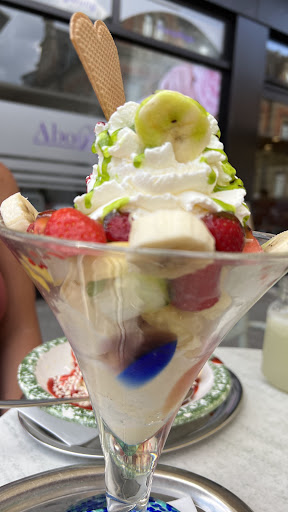 Aber jetzt zum wesentlichen. Service ist super. Ich komme seit Jahren hier zum Eis essen, es sind seit Jahren die gleichen Mitarbeiter und das ist auch gut so. Das bestellte Eis kommt wirklich in nur wenigen Minuten. Und ein riesen Plus ist das die Preise einfach human günstig sind und zu meinem erstaunen war das trotz inflation und alle andren Eis Cafés die Preise erhöht haben aber nicht hier. Immer noch die gleichen Preise wie im Vorjahr. Die Eisbecher sind gut gefüllt und schön garniert.