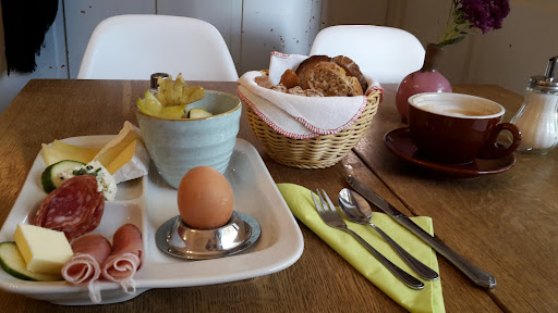 Wie diese 4,5 zustande kamen, ist uns ehrlich gesagt ein Rätsel… Erstens, vorab. Der Laden ist so mini, höchstens 20 Plätze. Wir kamen rein, es waren noch 2 von 6 Tischen frei. Wurden schon direkt hektisch empfangen und an einen Tisch platziert. Warteten dann eine Ewigkeit bis jmd kam. Nach 15 min hab ich das WC aufgesucht. Dort sah es aus als ob eine Bombe explodiert war. Beim rausgehen fragte ich ob hier Selbstbedienung sei?! „Nein, es ist halt viel los“ sorry, lächerliche 12 Menschen saßen in dem Café, davon hatten fast alle schon ihre Sachen. Wo ist da dann viel los? 2 Bedienungen und eine hilfloser als die andere. Aber, was uns total gestört hat (vermutlich wäre ein Gesundheitsamt da auch nicht begeistert) war, dass die Sahne die ganze Zeit (zumindest während wir da waren, 1,5 Std) ungekühlt da stand. Als die Sahne auf die Teller gemacht wurde, war der Haufen so flüssig, das war eine Frechheit die Teller so zum Gast zu bringen. Wahrscheinlich hatte sie noch einen Stich. Irgendwann kam dann die Bedienung und nahm die Bestellung auf. 30!!! Min später saßen wir immer noch leer an unserem Tisch. Hab dann gefragt, ob unser Kaffee vergessen wurde? „Oh, ist untergegangen.“ Bravo, gab dann ein trockenes Stück Kuchen aufs Haus. Auf einem Teller, der aus der Spüle schnell rausgenommen wurde und abgewischt wurde. Die Theke generell sah Katastrophal aus, Kuchen der geschnitten wurde, stand auf einem Tisch an dem auch bezahlt wurde. Mega hygienisch. PS: in Pandemie Zeiten ist es Pflicht Teller und Tassen durch die Spülmaschine zu lassen und nicht nur durch den Lappen zu zerren. Absolut nicht...