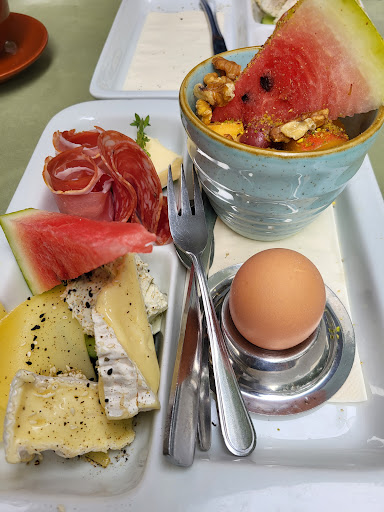 Read moreKlein aber fein. Das trifft hier durchaus zu. Das kleine Café liegt leicht versteckt in der Neckarstadt. Wer es findet, wird auf seine Kosten kommen. Da hier sehr auf Bio geachtet wird, sind die Preise dementsprechend ziemlich hoch. Allerdings spiegelt sich die Qualität im Essen wieder. Heißt wer sich ein Ei bestellt, kann auch davon ausgehen, dass der Geschmack und die Qualität 100% Bio sind. Das Frühstück wird liebevoll auf Tellern angerichtet und ist ein wahrer Augenschmaus. Die frische des Brotes und der Brötchen ist sofort riech- und hörbar beim rein Beißen in die Kruste. Für den Preis wird auch (meiner Meinung nach) ordentlich aufgefahren. Bisher musste ich noch nie Nachbestellen aufgrund Hungergefühle. Im Gegenteil. Nach dem Frühstück ist man wunderbar gesättigt aber nicht übermäßig voll gegessen. Was ein kleiner Minuspunkt für mich ist, dass die Getränke bei dem Preis nicht inkludiert sind und dass es nur Hafermilch als Laktosefreoe Alternative gibt. Hier könnte man überlegen, was zu ändern, aber wie gesagt, meiner Meinung nach nur ein kleiner Aspekt bei einer sonst überragender Leistung. Der service ist sehr freundlich und kompetent. Da wir aufgrund einer größeren Gruppe diesmal recht lange auf unser Frühstück warten mussten, kam die Bedienung auch auf uns zu und bot uns als Entschuldigung ein Eis an, welches wir auch dankend entgegen nahmen. Auch hier wurde wieder gezeigt, dass man seine Gäste ernst nimmt und Unannehmlichkeiten professionell beheben kann. Wir kommen sehr gerne ins Kleine Cafe und können es durchaus jedem empfehlen, der sich gerne mal ein gutes Frühstück...