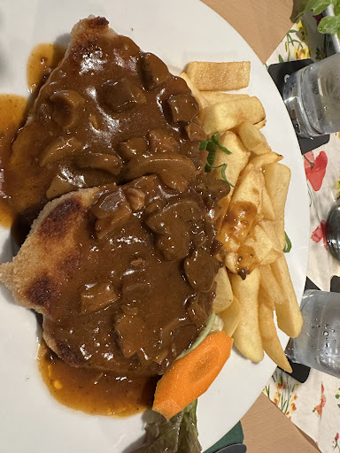 Read moreFantastic food and very pleasant staff. I had one of the regional specialties, turkey strips in Rahmsoße and mushrooms with potato rösti - it was absolutely to die for, and I'm desperate to find a recipe for Rahmsoße now so I can get my fix back in the UK! The rest of our group mostly stuck to schnitzel in various forms, and I think the very generous portions were a bit much for them (two escalopes per person!), though they did also enjoy the food. One of my friends had the Jägerschnitzel and it was piled high with onions and mushrooms, and he said it was really delicious. All in all a great meal, and if we did happen to be back in Mannheim I'm sure we'd go again....