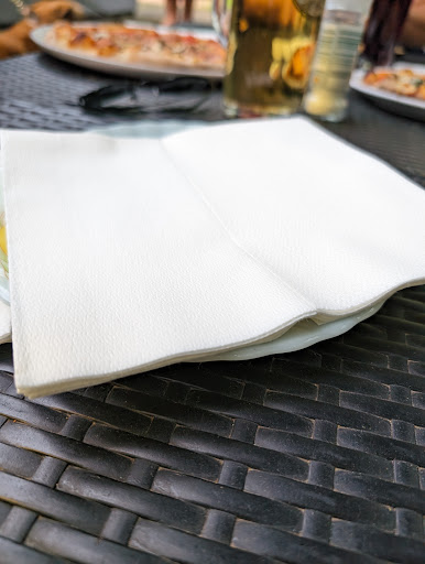 Unsere Hauptgerichte, die Pizza (Capricciosa & Vegetaria) und die Bruschetta, waren geschmacklich definitiv in Ordnung und konnten uns zufriedenstellen. Wir haben dazu normale Getränke wie Radler, Apfelsaftschorlen und Wasser genossen. Leider wird Bier dort nur in Flaschen angeboten und nicht vom Fass ausgeschenkt. Bei einem Italiener zählt ja aber ohnehin primär die Weinauswahl und die machte durchaus einen guten Eindruck. Vielleicht beim nächsten mal. Übrigens: Die Servietten waren von guter Qualität.