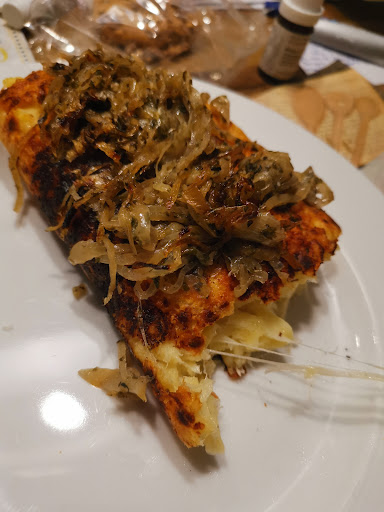 I had a goulash soup, which was tasty and came with awesome caraway bread. The Schnitzel with mushrooms and Bratkartoffeln was very good as well. The breading was a little bit too oily but still good. The star of the game were...