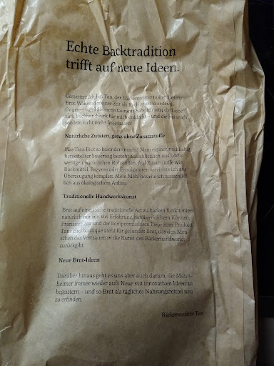 Read moreIch habe fast alle Bäcker in Mannheim probiert. Und bei Tan alle Brotsorten. Bei Tan schmeckt es mir am besten, weil ich die Zutaten schmecke. Manche Sorten sind nach über 10 Tagen noch genießbar. Etwas teurer, aber ich muss nichts wegwerfen! Einfach sehr gut! Bin kein großer Freund davon, jeden Laden zu bewerten, aber manchmal muss es sein! Einige Bewerter kann ich leider nicht ernst nehmen: „Brot trocknet schnell selbst bei richtiger Lagerung… (dann lagere ich wohl falsch 😉…). „ ab 11.00 Öffnung ist zu spät ( aber beschwert sich, wenn Er um 15.00 im Laden ist, und das Angebot ist nicht mehr komplett)… Liebe Tan‘s,...