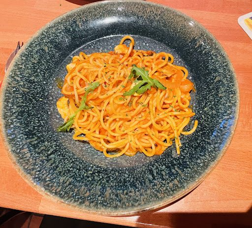 I would give the food 4 stars but everything else was 5 stars (atmosphere, service, location, food options) so 5 stars. We came on the weekend for lunch, we waited 20ish minutes which was fine, we walked around some and came back but you may want to make a reservation if you know in advance you will eat there. The pasta is homemade. I got number 100. It was good, I felt like it was missing a little something but I don't know what. I tried the pizza early. That was really tasty. Also tried the lasagna which was good. I tried one of the pasta casseroles, it was very very cheesy but the sauce was really good. Had the maracuja spritz, which I really liked. Service was really nice and great! I would...