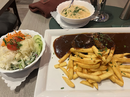 Read moreMein Freund und ich waren dort heute zum Abendessen. Erst mal möchte ich sagen das die Kellnerin super freundlich und nett war deshalb auch 5 Sterne,Ambiente war auch sehr schön. Was das Essen angeht waren wir zuerst sehr begeistert wir hatten den Grillteller für 2 Personen,das Fleisch war hervorragend bis auf die zwei Rumpsteak es war vom Geschmack und von der Konsistenz eher Rinderleber als Rumpsteak zumal es auch tot gebraten worden ist darauf hin fragten wir ob wir ein neues bekommen könnten was auch super geklappt hat es war Medium und hat auch sehr gut geschmeckt allerdings wurde das zweite vergessen mitzunehmen und wir fragten ob man das auch nochmal neu machen könnte worauf hin die Kellnerin es wieder mitnahm darauf hin kam die Cheffin raus und hat uns etwas genervt und unhöflich klar machen wollen das es sich um Rumpsteak handelt, nach ca Fünf Minuten kam die Kellnerin dann wieder mit dem zweiten Steak als mein Freund es dann aufgeschnitten hat war es leider noch komplett roh und eiskalt von innen. Darauf hin haben wir dann auch nicht mehr nachgefragt ob man es nochmal neu machen kann als die Kellnerin fragte was damit sei sagten wir es ihr und sie bot an es nochmal Braten zu lassen was wir aber dann verneinten wir verlangten dann nur noch die Rechnung und wollte gehen uns wurde zwar noch ein Kaffee oder Schnaps aufs Haus angeboten was an sich sehr nett ist aber wir werden definitiv nicht...