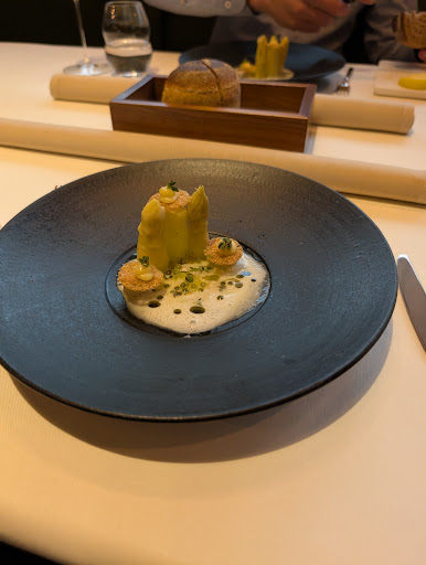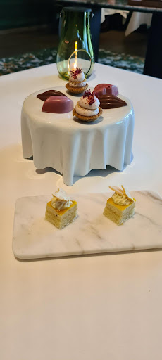 Read moreWir kamen zum Valentinsmenü ins Esszimmer. Im Vorfeld wurde ich persönlich angeschrieben und nochmal nach Allergien befragt, damit man sich vor Ort beim Menü danach richten kann. Außerdem wurde ich darüber informiert, wo wir am besten parken können und dass man im Restaurant ein Ausfahr-Ticket erhält. Das Ambiente ist sehr einladend & behaglich. Der Service war super nett, wir hatten 5 Mitarbeiter an unserem Tisch, die sich um das Servieren der Speisen und Getränke, samt ausführlicher Erklärung kümmerten. Besonders hervorzuheben war die super herzliche Mitarbeiterin von den Philippinen!! Die Speisen, bei denen der Fokus ja auf Gemüse liegt, waren sehr lecker. Lachs und Stubenküken waren natürlich auch sehr lecker, es gab nichts, was uns nicht geschmeckt hat. Für unseren Geschmack war lediglich das Dessert zu üppig von der Größe her. Aber das liegt evtl. daran, dass wir nach einem Menü ein Dessert in der Größe niemals wählen würden, maximal zum Teilen. Nach dem Dessert kommt ja noch ein süßes Finale, das wir einfach nicht mehr essen konnten. Somit können wir uns heute noch drüber freuen, denn wir haben einen kleinen Karton mitbekommen, in dem die kleinen Köstlichkeiten verpackt wurden. Der Rosé-Sekt als Aperitif war sehr gut, ebenso die empfohlenen Weine zur Begleitung. Besonders hervorzuheben ist, dass es neben der Weinbegleitung auch eine alkoholfreie Begleitung zum Menü gibt. Das finde ich sehr zeitgemäß und ansprechend. Die Getränke wurden mit viel Raffinesse komponiert und haben ebenfalls Spaß gemacht zu genießen. Ein gelungener Abend war das im Esszimmer. Wir bedanken uns für die Leidenschaft, mit der alles...