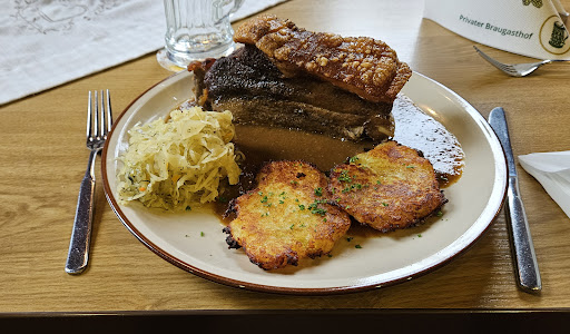 Read moreRestaurace není příliš velká, po poledni tu bylo plno, je dobré si udělat rezervaci. Tu vám zařídí přes e-mail rychle a ochotně. K pozitivům patří místní pivo, výhled od stolu do varny pivovaru, ale především gastronomie. Menu není rozsáhlé, což je dobře, důraz je tu kladen na klasickou německou kuchyni, obohacenou o využití místního piva. Vepřová lopatka i maso s omáčkou z piva, které jsme si tu dali, byly vynikající, navíc doplněné o chutné gebratene Kleeße, tedy jakési opečánky. WC jsou pěkné a čisté, ceny jídel průměrné. Jediné, co bych vytknul je trochu pomalejší obsluha, je-li plný sál, pan vrchní má co dělat,...