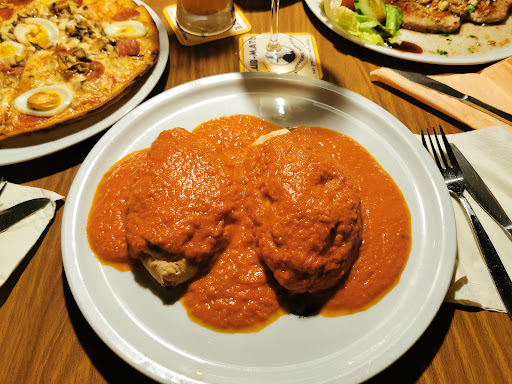 Die Pizza ist allerdings absolut alltagstauglich. Der Teig ist gut, der Belag würzig und der Käse echt. Salate sind frisch und schmackhaft, allerdings ohne "gezaubertes" Dressing sondern mit Essig-Öl. Für mich sind die Canneloni veg. (und sicher auch normal) sensationell. Ich denke, die Nudeln sind selbstgemacht, die Füllung und Soße sehr sehr gut ... ich habe noch nirgends bessere gegessen.