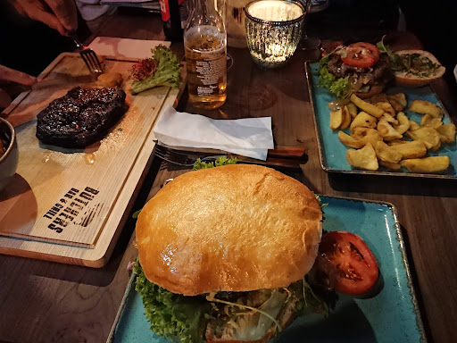 Read moreZum Glück bekamen wir am Samstag, 29. Oktober 22, noch einen Platz für 2 Personen. OK, der Tisch war jetzt nicht der Größte und auch das Platzangebot war in der Nische nicht sonderlich üppig. Aber hey, wer vergisst sich für Samstag was zum Essen zu kaufen und daraufhin spontan zum Essen geht und keine Zeit hat Tage vorher einen Tisch zu reservieren der nimmt das locker in Kauf. Wir zumindest! Der Service, in diesem Falle Sabrina ;), war überaus freundlich. Die Getränke wurden, nachdem wir uns in Ruhe die Getränkekarte angesehen haben, aufgenommen und fanden schnell den Weg zu uns. Auch die Wartezeit zwischen Bestellung vom Essen bis hin zum Servieren verging wie im Flug, sprich es war nicht sonderlich lang. Wir hatten 2 Rib Eye, eins mit Salat, Zwiebelringen und BBQ-Sauce das andere mit Süsskartoffelpommes, Grillgemüse und Hot Sebba Chili Sauce. Die Steaks wurden gegrillt wie wir sie bestellt hatten. Die Beilagen waren in der Menge mehr als ausreichend und frisch. Wer also hier meckert das es zu wenig Beilagen gibt der geht wohl nur in XXXL Restaurants zum Essen. Die Saucen zu den Steaks waren sehr gut. Der Salat schön knackig und die Zwiebelringe waren frisch und hausgemacht. Wer macht in der heutigen Zeit die panierten Zwiebelringe noch selber? Alleine hierfür bekommt das Butchers einen extra Stern. Die Pommes waren würzig und knusprig. Das Grillgemüse hatte neben dem guten Geschmack auch noch den richtigen Biss. Und hier kommt jetzt das "meckern" auf höchstem Niveau. Es kommt vor das wenn man Zwiebeln schält ein Stück vom inneren der Zwiebel hart bzw. holzig ist. Und genau 2 solcher Stücke waren in meinem Gemüse. Aber mal ehrlich, alles andere war perfekt und muss ich deswegen einen Aufstand machen? NEIN!!! Ich habe es auch so unserer Bedienung, der Sabrina, gesagt. Und sie hat sich dafür entschuldigt und somit war das Thema für mich gegessen. Kurzum, wir freuen uns auf den nächsten Besuch im Butchers. Aber diesmal werden wir vorher anrufen und einen Tisch...