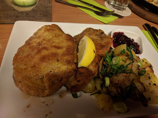 Read moreGestern mit Muttern dort gewesen. Hatte Cordon Bleu mit Kartoffelsalat bestellt. Der Kartoffelsalat war eiskalt und ungenießbar , hatte auf der Zunge gebrannt und gebitzelt. O-Ton Kellner: Das kann gar nicht sein, den haben wir erst gestern gemacht. Nix mit frisch und lauwarm wie man es erwartet. Räumte dann ein, dass möglicherweise etwas zu viel Knoblauch im Bayerischen Kartoffelsalat drin wäre und dass das letztlich Geschmacksache sei. Also gegen diese Pampe schmeckt Tzaziki wie fader Naturjoghurt. Das Fleisch schwammig, außen war es etwas dunkel mit schwarzen Pigmenten, die Panade - übrigens aller am Tisch bestellter Schnitzel - letschrig ölig und löste sich vom Fleisch . On Top dann nach dem Essen: Es kam ein Cappuccino zu wenig. O-Ton Kellner: Das kann gar nicht sein, es waren nur zwei aufgeschrieben. Mir tat es dann fast schon leid, die Herrschaften mit unserer Anwesenheit belästigt zu haben. Fazit: Habe mich geärgert, dort für Essen, das jeder Metzgereiimbiss besser kann, soviel Geld bezahlt zu haben. Am meisten ärgert es mich, dass ich für diesen Service auch noch Trinkgeld gegeben habe. Ambiente: Muffiger Geruch beim Betreten. Hätte Muttern nicht das Lokal ausgesucht, wäre ich wieder gegangen. Bei Schnitzeln hört bei mir...